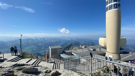 „Hat Gott diese Welt nicht wunderbar gemacht“ war der Satz, der mir immer wieder durch den Kopf ging. Nach einigen Schnappschüssen suchten wir uns einen Ort zum Frühstücken. Ich glaube, ich hatte bisher kein schöneres Frühstück gehabt. Ein Frühstück mit einer Aussicht wie auf einer Postkarte. Gleich neben uns flogen die Alpendohlen auf und ab und entdeckten dabei unser Frühstück. Hin und Wieder wurden wir schwach und gaben den rabenähnlichen Vögeln auch ein Stück von unseren Bretzeln ab. Nach einigen Stunden auf dem Säntis, beschlossen wir mit der Gondel, zurück ins Tal zu fahren. Wir machten jedoch noch einen kurzen Abstecher zu den Erlebniswelten. Hier gibt es tatsächlich viele interessante Stationen zu entdecken und jeder, von Groß bis Klein, kann hier so einiges über den höchsten Berg im Alpstein lernen.