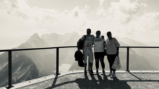 Am Berg oben angekommen, kam uns zuerst die kühle, erfrischende Alpenluft entgegen. Wir machten uns auf zur höchsten Aussichtsplattform und ich war hin und weg von dem Panorama, das mich erwartete. Überall um uns herum waren Berge und von allen Seiten her sah man Wanderer, die wie klitzekleine Punkte erschienen.