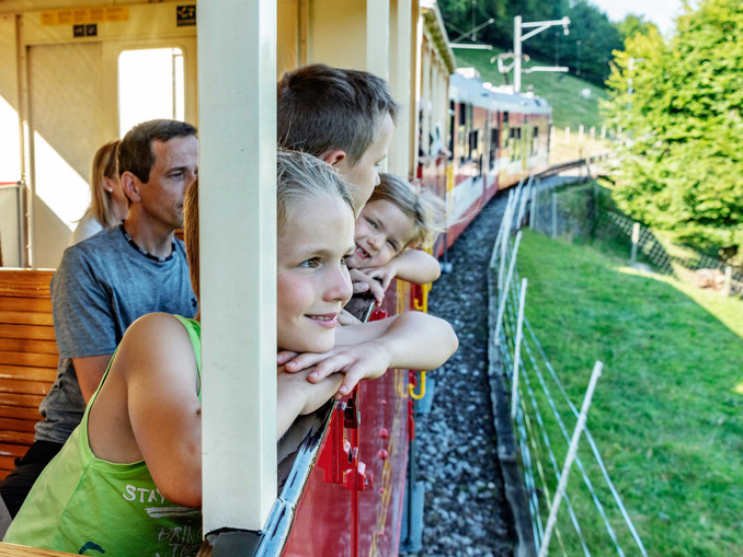 Mit der Rorschach-Heiden-Bahn fahren Sie von Rorschach am Bodensee hinauf ins Biedermeierdorf Heiden. Auf dieser Fahrt erwarten Sie einzigartige Ausblicke über den tiefblauen Bodensee. Von Mai bis September können Sie bei schönem Wetter im offenen Aussichtswagen den Fahrtwind im Gesicht spüren. Ab Mai 2024 wird das Witzerlebnis neu inszeniert. Die typischen Appenzeller Witze werden hörbar! Auch auf der Fahrt und am Bahnhof Heiden gibt es Neues zu entdecken. Außerdem lernen Sie Spannendes zum Hintergrund des Appenzeller Witzes.