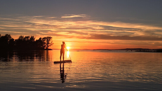 Beende Deinen Tag mit einem unvergesslichen Erlebnis auf dem Bodensee. Treffpunkt ist bei Abenddämmerung - dann geht es mit dem SUP auf das Wasser, um den wunderschönen Sonnenuntergang zu genießen. So lässt sich ein perfekter Tag ausklingen.