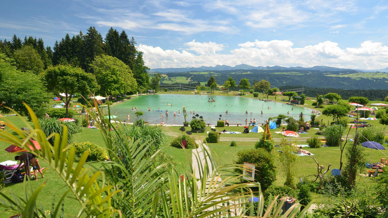 Nach einem erlebnisreichen Tag kannst Du im Alpenfreibad Scheidegg deine Seele baumeln lassen - und das mit einer Aussicht wie an einem Bergsee. Genieße von der Liegewiese aus das Alpenpanorama des Dreiländerecks im Allgäu und schwimme im von Quellwasser gespeisten Naturbecken. Die beheizbaren Kinderbecken mit Rutsche lassen bei den Kleinen jede Menge Spaß aufkommen.