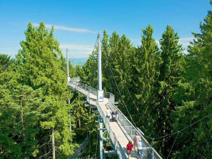 Starte Deinen Sommertag mit einem atemberaubenden Ausblick aus bis zu 40 Meter Höhe in die Allgäuer Alpen und auf den Bodensee. Spielen, Entdecken und ein traumhafter Weitblick - das rundet den Besuch in der Waldwelt Skywalk Allgäu für Groß und Klein ab.