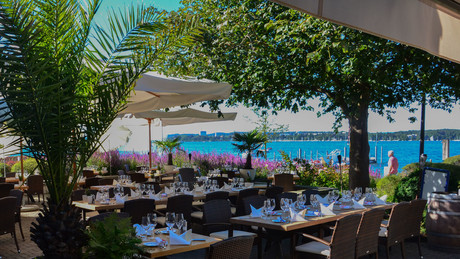 Eine der besten Adressen für einen kürzeren oder auch längeren Aufenthalt am Bodensee ist das Bad Horn Hotel & Spa in Horn. Das Restaurant hat eine wunderschöne Terrasse an erster Seelage und kann über den hauseigenen Anlegesteg sogar vom Wasser aus mit dem eigenen Boot angefahren werden.