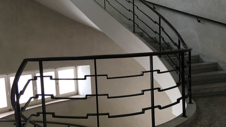 Ich steige aufs Rad um und fahre hinauf nach Staad. Denn ein Jahr später schuf Blomeiner hoch über dem See mit der Kreuzkirche ein weiteres Meisterwerk. Nach italienischen Vorbildern reduzierte er den Duktus der Saalkirche mit frei stehendem Kampanile auf das Wesentliche. Das tragende Betonrahmengerüst fachte er mit wässrig-gelben Ziegeln und Dickglasscheiben so effizient aus, dass das Innere mittels “Lichttore“ festlich inszeniert wird. Zurück zum Seerhein: Dagegen schon stark vom Geist des Minimalismus zehrt die 1965 errichtete Wessenbergschule. Trotz aller kompakter Geschlossenheit und Strenge war die enge Verknüpfung mit dem Außenraum Blomeiers Anliegen. Das gelang ihm durch die bauhaustypische Verbindung von Bauteilen mit offenen Gängen, durch raumhohe Duchfensterungen oder hinausgeschobene Kastenerker zum Seerhein. Hier zeigt sich erneut: Ästhetik abseits von Schnörkel, Schmuck und Schnickschnack muss nicht immer unangenehm aufbegehren. Sich von der Landschaft inspirieren zu lassen, um sie wiederum auf originelle Weise zu verfeinern, von diesem Geist wünscht ich mir heute mehr Wellenschläge.