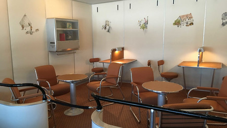 Ich möchte die industrielle Progression und Kreativität der Industriestadt näher in Augenschein nehmen und werfe einen Blick ins Innere der 1933 eingeweihten Inkunabel des Bauhauses am Bodensee. Seit 1996 residiert hier das Zeppelin-Museum. In der einstigen Bahnhofshalle im Obergeschoss halten keine Züge mehr. Stattdessen hat das Luftschiff LZ 129 angedockt. Kongenialer scheint die vom Bauhaus beförderte Verbindung von Kunst und Technik nicht vermittelbar. In originalgetreu rekonstruierten Gesellschafts-, Schreib- und Lesezimmern des Luftschiffs stehen die ultraleichten, von Fritz August Breuhaus de Groot entworfenen Aluminiummöbel im Bauhaus-Stil. An den Wänden faszinieren auf hauchzarten Bespannungen aus Ballonseide gespritzte Motive der Designerin Maria May im Stil der Neuen Sachlichkeit.