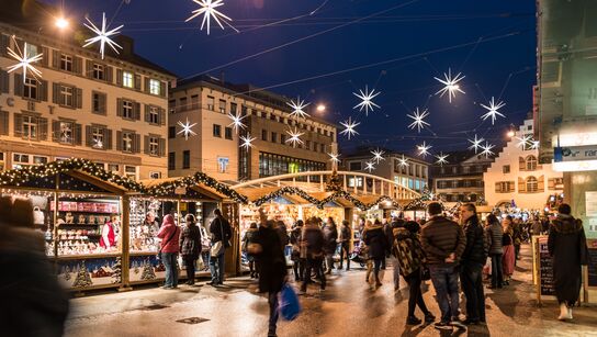 In der Klosterstadt St. Gallen versetzen rund 700 funkelnde Sterne die Altstadt in weihnachtlichen Glanz. Schweizer Weihnacht, wie aus dem Bilderbuch. Um den Marktplatz reihen sich romantische Holzhäuschen aneinander, in denen Schweizer Kunsthandwerk angeboten wird. Natürlich fehlen auch hier die kulinarischen Köstlichkeiten nicht. Es duftet nach heissen Maroni, der berühmten St. Galler Bratwurst und Glühbier. Festliche Alphornklänge schallen durch die Gassen und es wird mir ganz feierlich ums Herz.