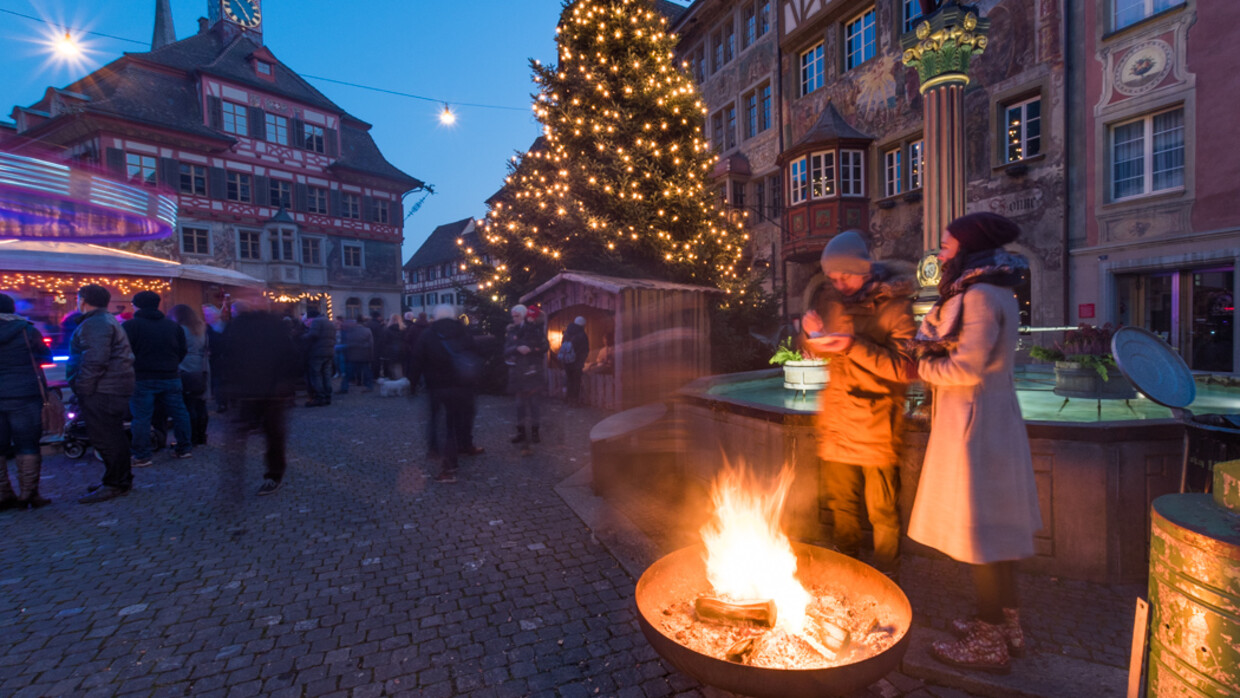 Der kleine, aber feine Weihnachtsmarkt im schweizerischen Städtchen Stein am Rhein steht unter einem märchenhaften Motto. Hier treffen sich vor allem die Einheimischen auf einen Glühmost oder ein Raclette und es herrscht einen familiäre Atmosphäre.