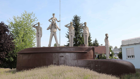 Nachdem ebenfalls in einer Nachtaktion die Sparkasse Stockach auf ihrem Gelände die Skulptur "U-Boot U20" aufgestellt hatte, zogen am Himmel der Finanzgruppe dunkle Wolken auf. Wurde doch der in Amt und Würden befindliche Verteidigungsminister Rudolf Scharping in zweifelhafter Pose aufs Korn genommen. Mit dem Rücktritt des Ministers legten sich die Gemüter jedoch wieder, seither ist das Lenk-Kunstwerk neuer Anziehungspunkt des Bankhauses. Touristen richten ihre Kameras auf die von Lenk in Beton gegossenen Gestalten, die auf satirische Weise, meist nackt und unförmig absurde Machenschaften in Politik, Wirtschaft, Klerus und Establishment aufs Korn nehmen – thematisch ähnlich grotesk wie auf Motivwagen im Kölner Karneval. Das findet Anklang. Doch ist es obszön, die Mächtigen der Welt künstlerisch auf ihre nackte Existenz zurückzuwerfen und sie entkleidet im Lichte kritikwürdigen Handelns im öffentlichen Raum zur Schau zu stellen? Die Öffentlichkeit ist durchaus geteilter Meinung. Peter Lenks Standpunkt ist klar: "Ein nackter Mensch ist nicht obszön, obszön ist die Politik. Da kommt kein Künstler mehr mit."