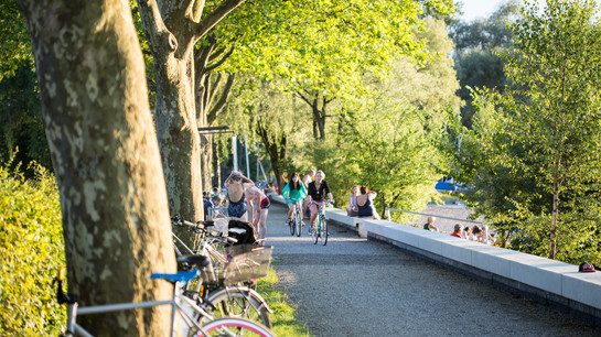 Jetzt aber ab auf die Räder - diese bekommen wir bei Procycle direkt an der Uferpromenade in Bregenz. Von hier aus geht es ein Stück weit entlang des Bodensee-Radweges in Richtung Hard zum Birdwatching. Mitten im Naturschutzgebiet des Rheindeltas, welches mit seinen naturnahen Feuchtwiesen und Schilfröhricht Lebensraum für über 330 Vogelarten bietet finden wir unbebautes, naturnahes Ufer. Ausgestattet mit unseren Ferngläsern können wir zwischen Schilf und seichtem Wasser einige interessante Vogelarten, wie beispielsweise Haubentaucher und Kormorane aufspüren. Wir sind wirklich fasziniert von dieser Landschaft und finden, dass das Rheindelta definitiv nicht nur für Vogelkundler spannend ist.