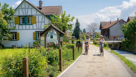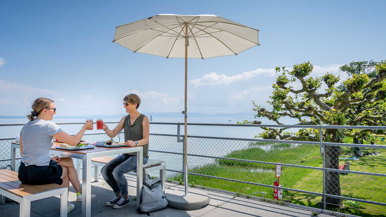 Den Bodensee vielerorts im Blick, führt diese Velotour an Hafenstädten und grünen Apfelplantagen vorbei. Für einen erfrischenden Schwumm eignen sich die idyllischen Badeplätze am See.