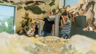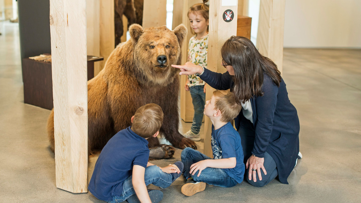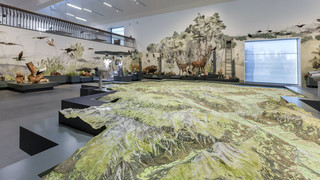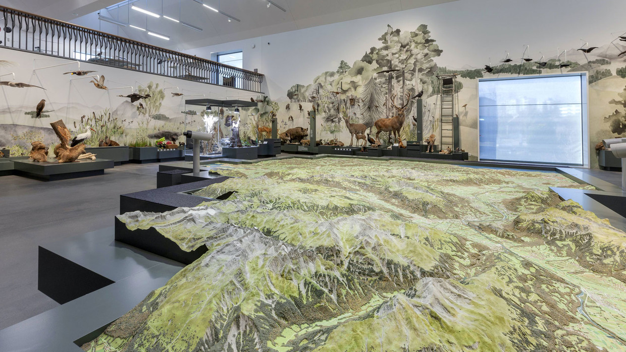 Die offene Ausstellungspräsentation mit begehbaren Raumbildern lädt Gross und Klein ein, die heimische Tier- und Mineralienwelt aktiv zu entdecken – neu auch mit dem digitalen Museumsguide in drei Sprachen. Besonderer Höhepunkt ist neben dem schweizweit grössten Landschaftsrelief und den heimischen Grossraubtieren auch das versteinerte Originalskelett eines Edmontosaurus.