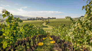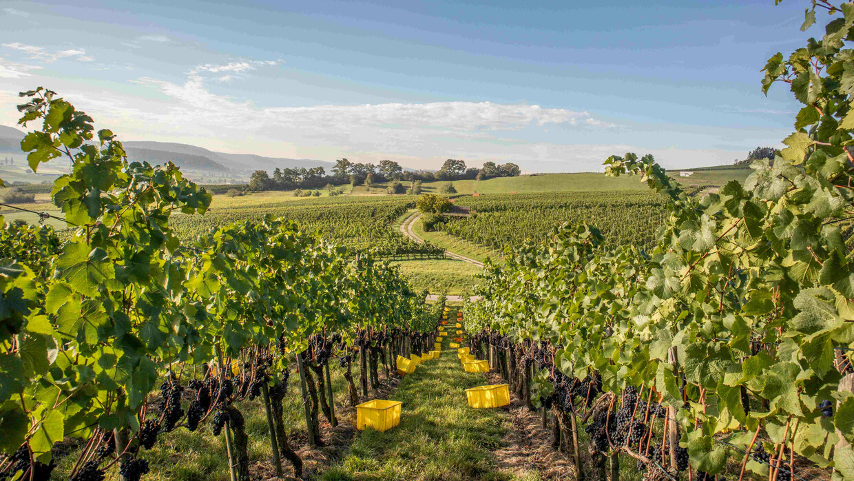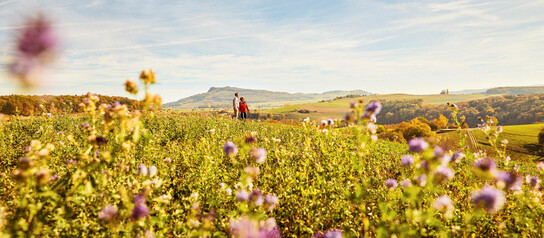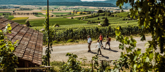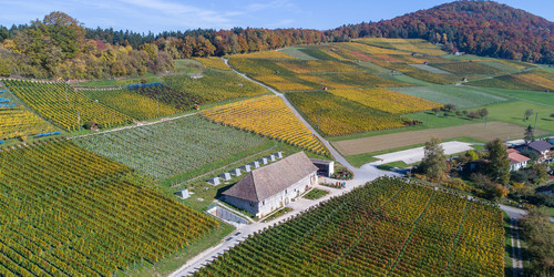 Die Kunst des Geniessens wird im nördlichsten Teil der Schweiz grossgeschrieben. Wir befinden uns im Schaffhauser Blauburgunderland. Das Rot des Pinot Noirs ist hier so präsent wie nirgendwo sonst in der Schweiz. Fast 70 Prozent beträgt der Anteil dieser Sorte an der Gesamtrebfläche. Optimal ergänzt wird der Blauburgunder durch das spritzige Weiss, etwa eines Riesling-Silvaners, und das saftige Grün der sanften Ausläufer des Randens.