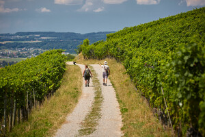Weite Blicke übers Wasser, und die Berge zum Greifen nah: Am südlichen Ufer des Bodensees breitet sich auf sanften Hügeln die Landschaft des Thurgaus aus. Ein Terrain, wie fürs Velofahren modelliert.