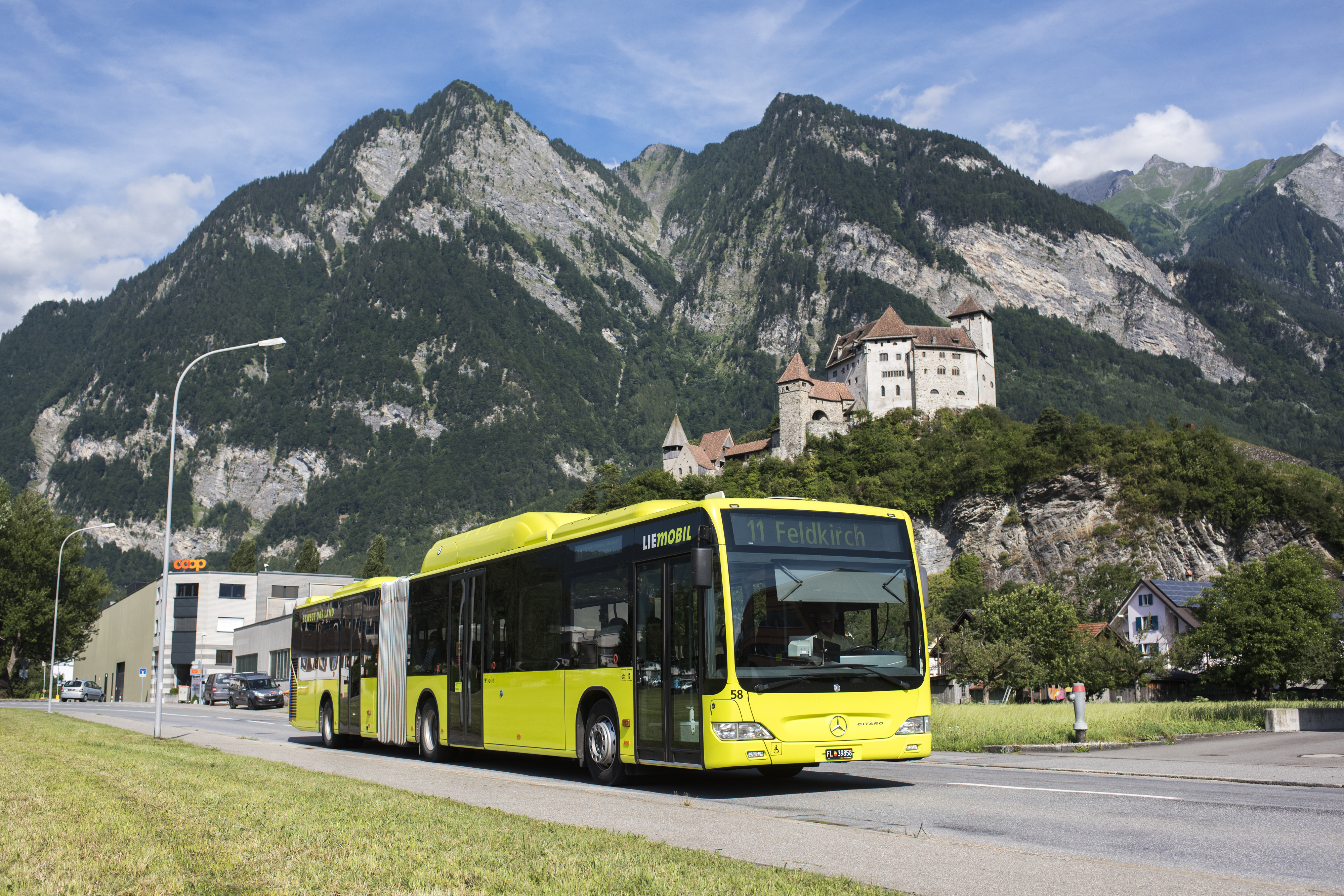 LIEmobilbus vor Burg Gutenberg Balz
