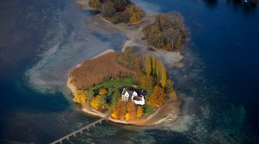 Die Roseninsel und der Flachwasserbereich um sie herum bilden zusammen die UNESCO Fundstelle. | © © BLfD, Foto: K. Leidorf