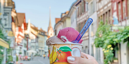 Beim bummeln durch die Altstadt Stein am Rhein ein Glacé genießen.