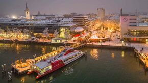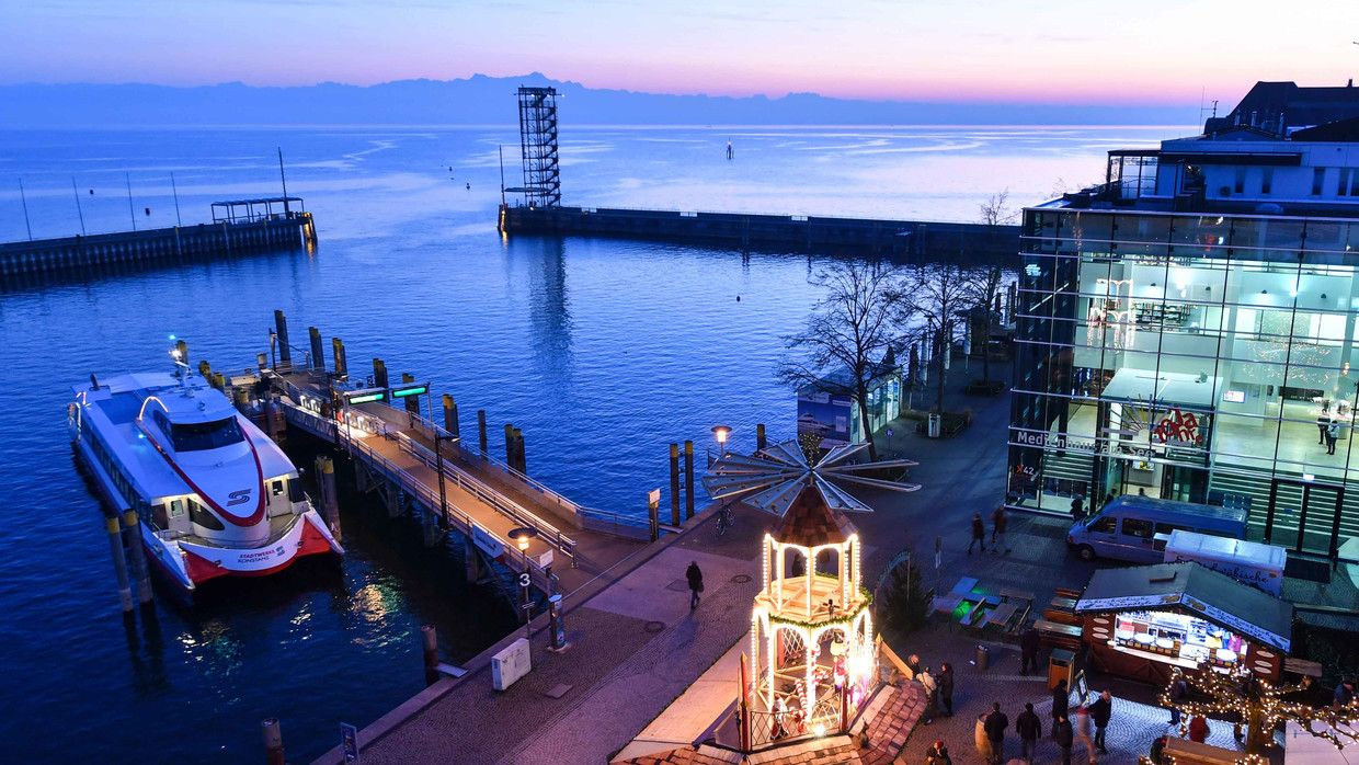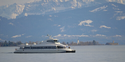Mit dem Katamaran quer über den Bodensee fahren – auch im Winter ein absolutes Highlight. Winterfeste Urlauber kommen definitiv auf ihre Kosten: Kalte klare Luft, ein atemberaubendes Alpenpanorama und entspannte Stille – der Bodensee ist im Winter eine Reise wert. Genießen kann man das vor allem auf dem See – und dem Katamaran. Denn der ist zur kalten Jahreszeit neben den Autofähren das einzige Schiff auf dem See.