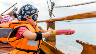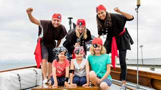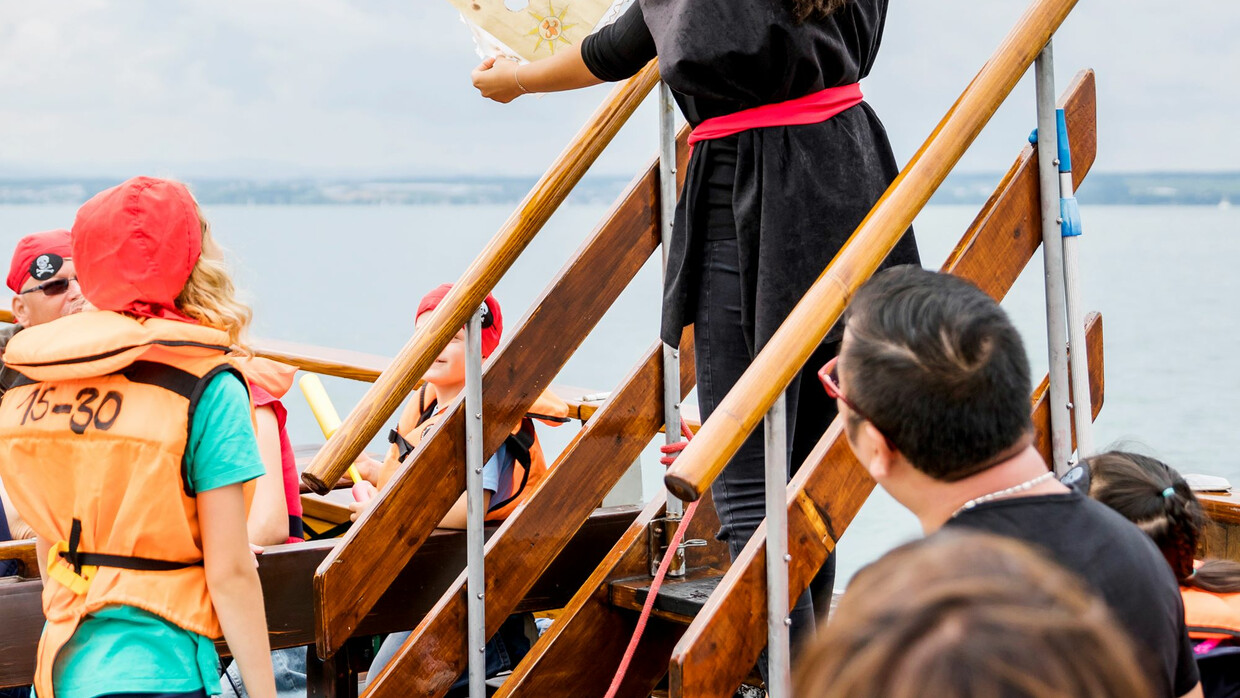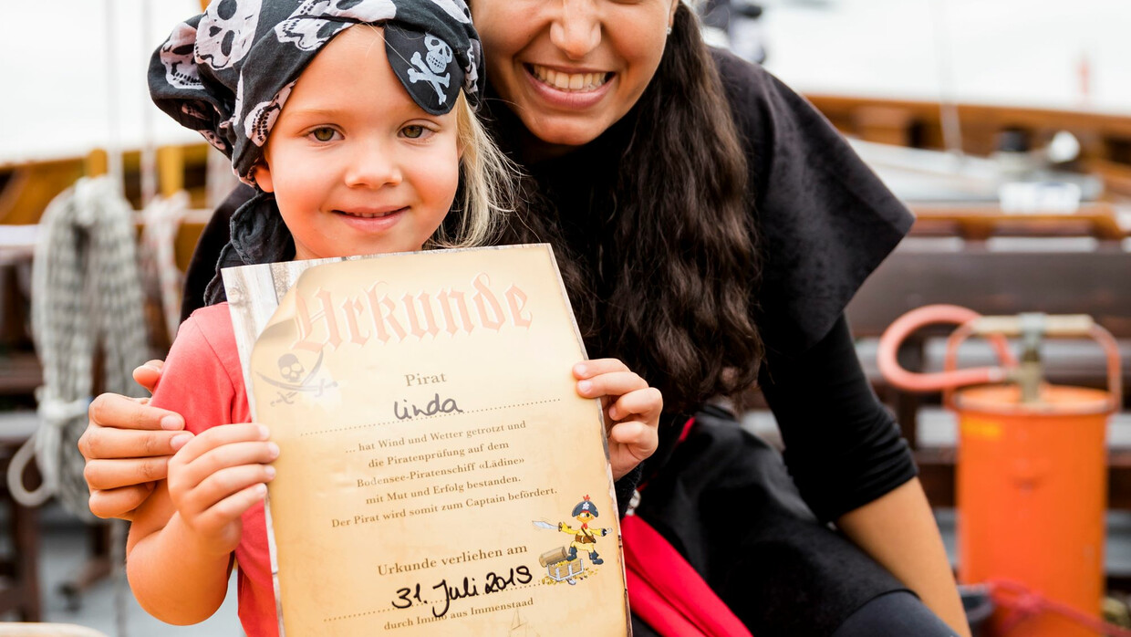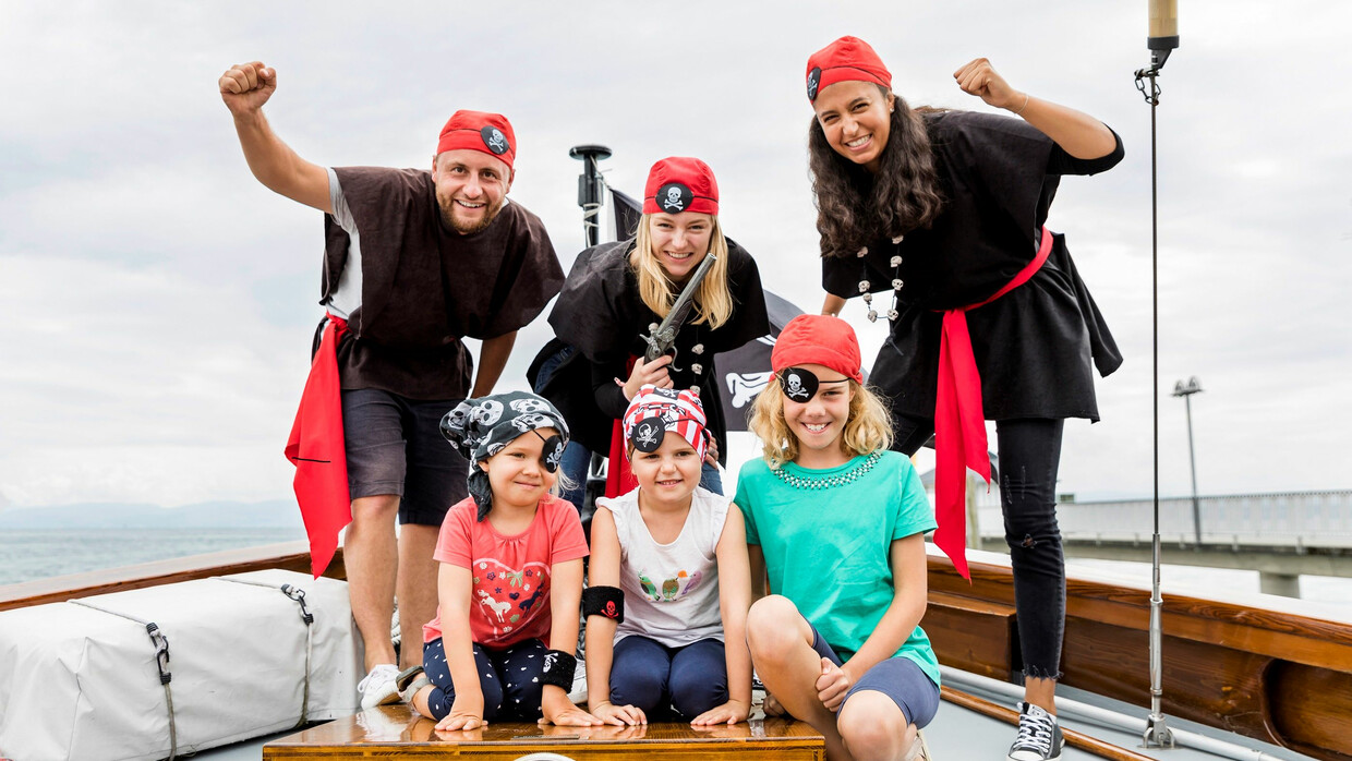 ARRRGH! Die Lädine ist in die Hände von Piraten geraten! Ausgerüstet mit Kopftuch und Augenklappe geht es auf eine 1,5-stündige Piratenfahrt auf dem Bodensee mit der ganzen Familie. An Bord des Segelbootes haben die kleinen und großen Piraten einiges zu tun: die Segel müssen gesetzt werden, das Deck geschrubbt, ein kniffliges Piratenrätsel muss gelöst und gefährliche Feinde abgewehrt werden. Denn einen echten Piratenschatz findet man selbstverständlich nicht einfach so!