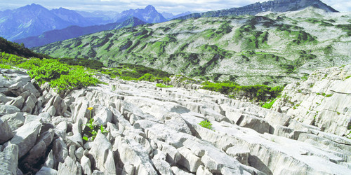 Das Gottesackerplateau ist eine einzigartige Karstlandschaft im Kleinwalsertal, die unter Naturschutz steht. Über Millionen von Jahren hat das Wasser hier auffällige Rillen und Klüfte aus dem Schrattenkalk gelöst. Das Wasser versickerte durch Spalten tief in den Kalk hinein und schuf so zahlreiche Karsthöhlen auf dem Plateau. So entstand diese ganz besondere Felsenformation, die Heimat vieler Pflanzenarten ist.