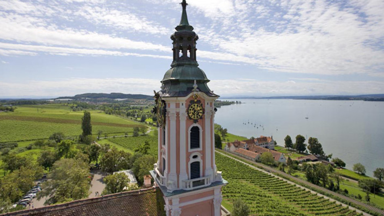 Hoch über dem See und inmitten malerischer Weinberge erhebt sich der rosa-weiße, schlanke Turm der prunkvollen Barockkirche Birnau. Die Wallfahrtskirche ist ein barockes Juwel an der westschwäbischen Barockstraße. Sie verfügt über eine reiche barocke Einrichtung mit beeindruckenden Fresken, Stuckarbeiten, Altären und Skulpturen