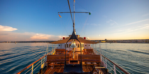 From Romanshorn harbour, enjoy the gentle breeze on the lake, the nostalgic atmosphere on-board of one of the historic motor boats the Hohentwiel or the MS Österreich that can’t be found anywhere else in the world. The Hohentwiel is called “Europe’s most superbly restored steamship” and symbolizes all the craftsmanship of an entire epoch.
