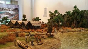 Présentation moderne d’une exposition de palafittes avec des modèles impressionnants et des vestiges archéologiques authentiques d’Arbon-Bleiche 2 et 3.