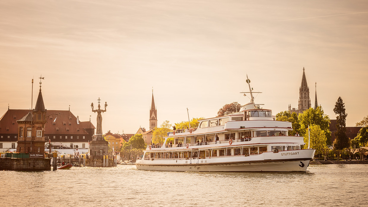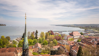 Constance est la plus grande ville du lac et en même temps la seule commune allemande sur sa rive méridionale. Le centre ville historique très bien conservé jouxte directement la Suisse, le lac et le Rhin lacustre qui quitte ici le Lac supérieur en direction du nord-ouest sous la forme d'un large cours d'eau. Par temps clair, la vue vagabonde du port de Constance jusqu'aux imposants contreforts des Alpes, en survolant les voiliers qui se balancent sur l'eau et le vaste lac d'un bleu intense.