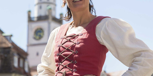 Una visita interattiva della città, la Ravensburg del 18mo secolo, con la curiosa donna della torre Regina Nabholzin, impersonata da Ana Schlaegel, Daniela Jakob o Angelika Wagner. “…Lui è lì su uno sgabello, vestito tutto di nero, porta il bastone sul criminale condannato e grida a voce alta: “morte al cappio, che Dio abbia misericordia della tua anima. E a questo punto comincia a risuonare anche la campana dei peccatori sulla Obertor. Quel suono chiaro, acuto, ve lo assicuro, penetra nelle ossa, e non ti lascia più”.