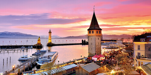 L'Avvento nella regione dei quattro paesi è innegabilmente un'esperienza per tutti i sensi. Questo tour combina spettacolari mercatini di Natale e attività culturali. Iniziate il tour sull'isola di Mainau. Continuate con il mercatino di Natale di Costanza che si trova direttamente sul lago e godetevi una tazza di tè o caffè su un tour natalizio in barca con la BSB. A Stein am Rhein, il Sentiero delle Fiabe vi aspetta con vetrine decorate con amore. L'ambiente unico sulla piazza del municipio e nei vicoli vi trasporta in un mondo da favola. Passeggiate nella città stellata svizzera di San Gallo prima di proseguire per Vaduz dove potrete visitare un mercatino di Natale circondato da un panorama montano unico. Nella regione del Vorarlberg si può scegliere tra tre diversi mercatini di Natale. Per arrivare da Bregenz a Lindau, prendi la nave natalizia MS Österreich. Bancarelle splendidamente decorate, musica natalizia, passeggiate notturne e molto altro ti aspettano alla Hafenweihnacht di Lindau prima di proseguire per Ravensburg. Una visita lì è un'esperienza molto speciale con due diversi mercatini di Natale con fino a un centinaio di bancarelle, molte delle quali vi invitano a partecipare. Il tour termina al mercatino di Natale di Friedrichshafen, dove accoglienti capanne e numerose bancarelle, direttamente sul lago, invitano a soffermarsi.
