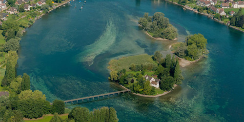 In den 1930er Jahren ausgegrabene Inselsiedlung. Fundschichten aus der Jungsteinzeit und Bronzezeit. Idyllisch auf der Rheininsel vor dem mittelalterlichen Städtchen Stein am Rhein gelegen.